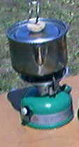 ガソリン式シングルバーナー。火力は二千キロ前半だが、ガス式に比べ倍以上の火力を感じる。 収納性は抜群。ガソリンを使うので火の取り扱いで注意が必要。 点火に少々時間と手間がいる。燃費が悪い。長時間の料理に向かない。五徳は安定感が有るのだが見た目は非常に不安定に見える。細かい火力調整が難。 寒い時期でも火力は落ちない。我が家は登山目的の時か非常用サブバーナーとして使用。 イワタニフラットツイン