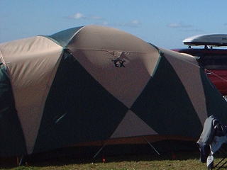 現在もキャンプ場で見かける。 設営が簡単。風に強い。収納性抜群。 耐水性はあまり強くない。室内は寝袋4つで満杯。 ファスナーがT字型で耐久性がない。我が家のもファスナーの周辺がもろくなっている。 いまだに愛着がある。現在は海などで砂まみれになっても良いときに利用。 コールマン EX2